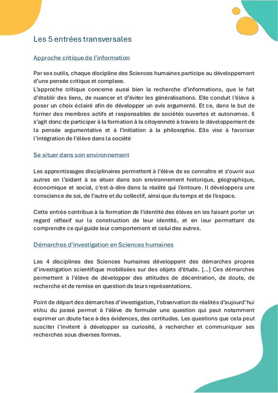Tronc commun Sciences humaines
