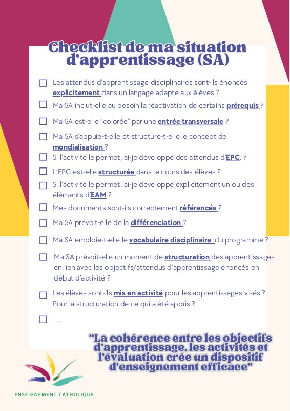 Checklist de ma situation d'apprentissage